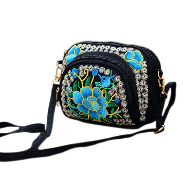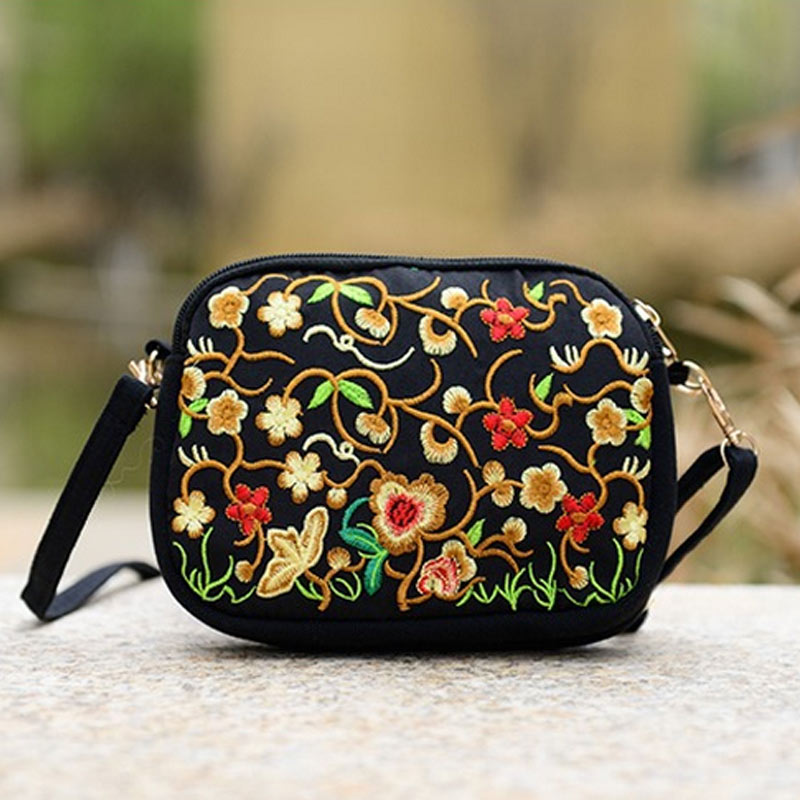 Hot Selling 2017 New Women National Style Flower Embroidery Canvas Shoulder Bag Messenger Bag China Trend -B5
