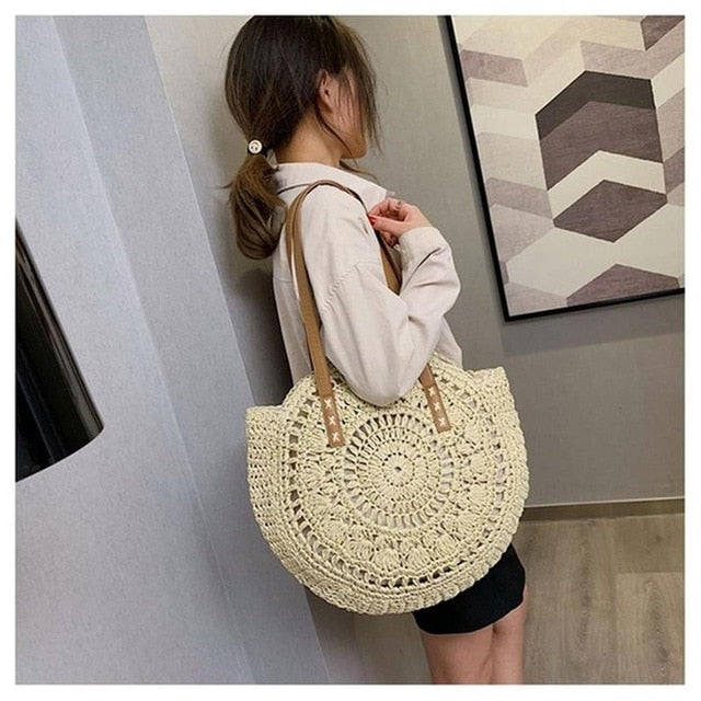 Women's Vacation Style Straw Handbag Simple Solid Color Shoulder Bags Small Shoulder Bags For Ladies Bags